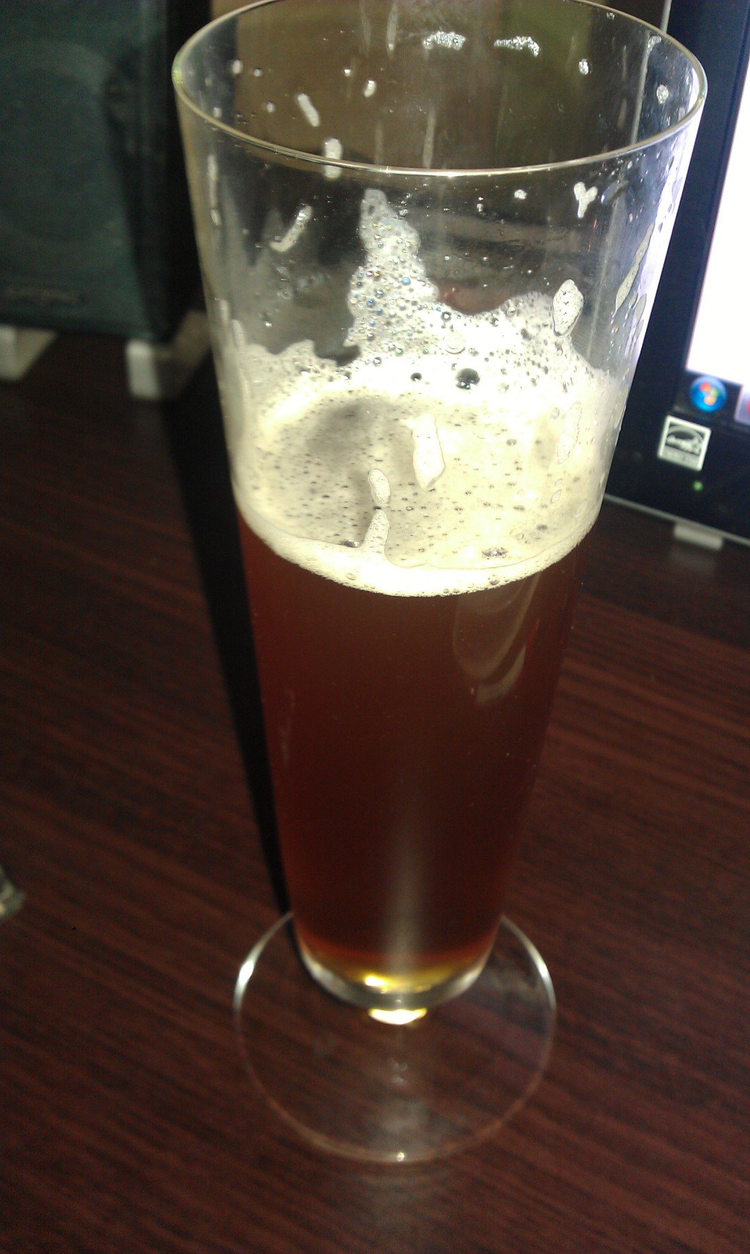 Barwa: Bursztynowa. Podobna zawiesina do obserwowanej w poprzednim piwie zupełnie tak jakbyśmy nalali sobie szklankę kompotu.