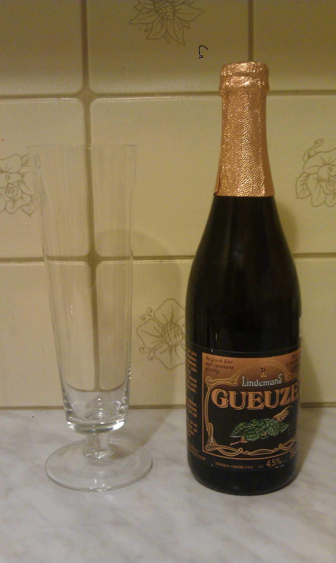 Jakiś czas temu zakupiłem kilka butelek, stosunkowo łatwo dostępnego Lindemansa. Na pierwszy ogień idzie właśnie Gueuze. Na etykiecie butelki przeczytamy między innymi, że należy podawać go w temperaturze 2-3 stopnie Celsiusza.  Do degustacji wydało mi się to za mało (chciałem aby piwko odkryło nieco więcej smaków/aromatów),  więc poniższy opis  odnosi się do smaku piwa w temperaturze 8-10 stopni.