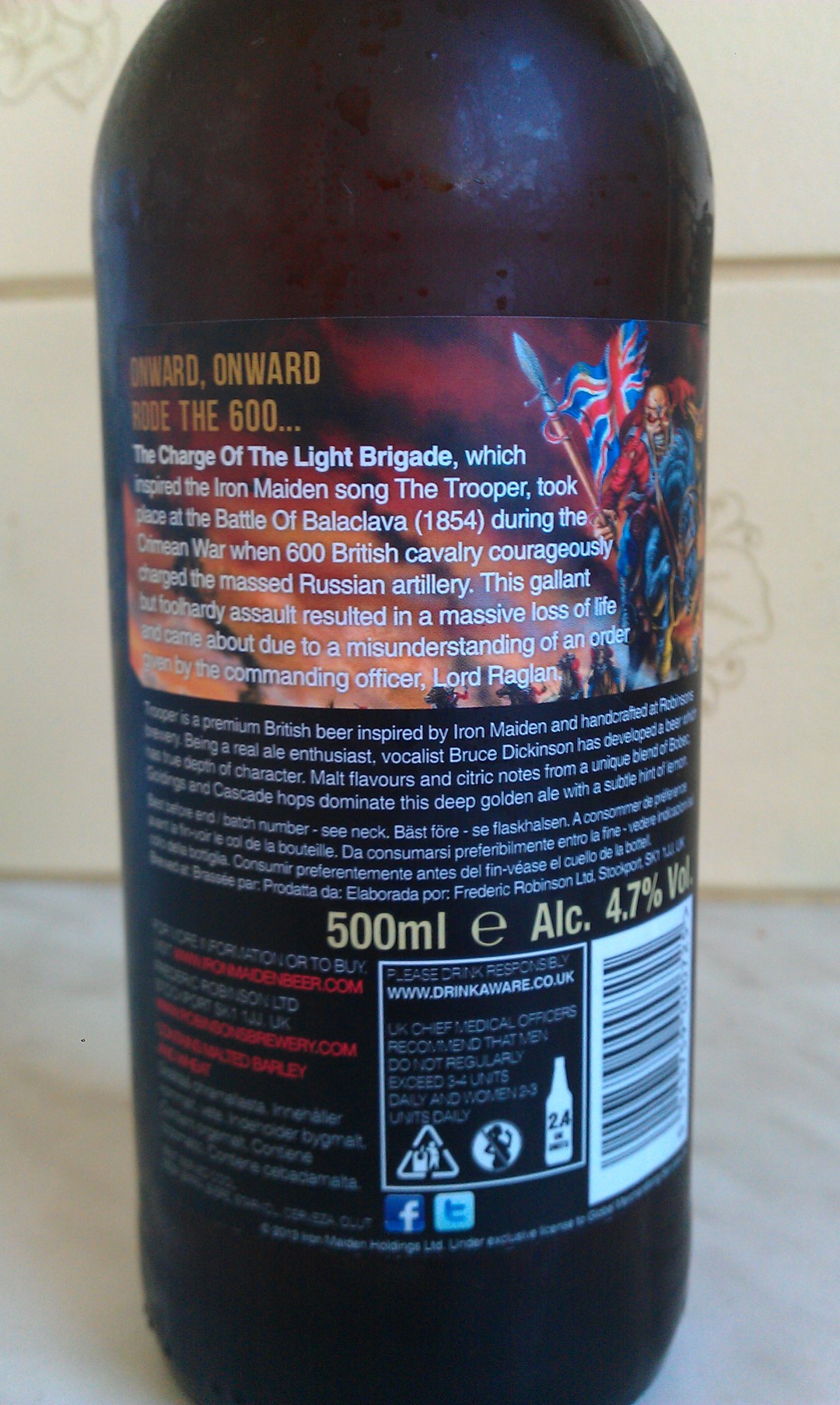 Ogólna zajebistość aka pijalność: Piwo w swoim stylu, czyli Premium Bitter/ESB, gdzie emfaza położona została na jego pijalność. Jednak jak na ESB, goryczka powinna być bardziej obecna. W przypadku Troopera jest ona moim zdaniem za mało wyrazista, za bardzo przykryta słodem. Mam wrażenie, że zostało to podyktowane faktem, że piwko było robione z myślą na eksport we wszystkie strony świata, a tym samym miało trafić gusta Lagerboy’ów, którym nie straszna jest Warka albo Żubr przed koncertem. Lub ich zagraniczny odpowiednik.
